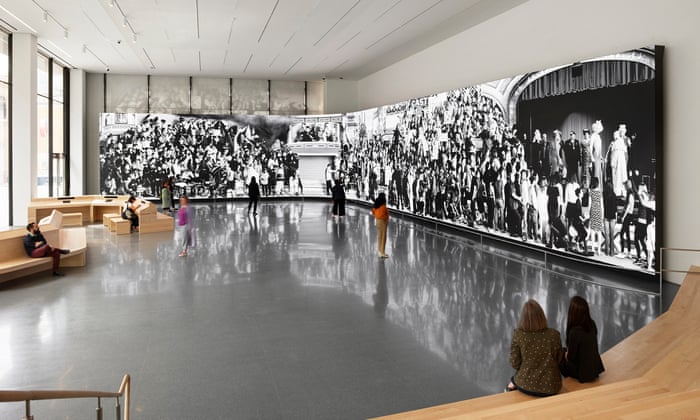 Well, it sure is damn nice to be able to say something positive about San Francisco of late (not to mention SFMOMA). And all thanks to none other than JR, who has once again managed to take the everyday and transform it into something wondrously alive, joyful and downright miraculous! And that pretty much describes The Chronicles of San Francisco- a giant, interactive panoramic display featuring a wide variety of San Franciscans assembled into an atrium sized collage where everyone pictured is not only seen, but celebrated and given voice; one humongous testimonial, one ginormous moving mural where each individual can instantly come to life and speak their peace at the press of a button.